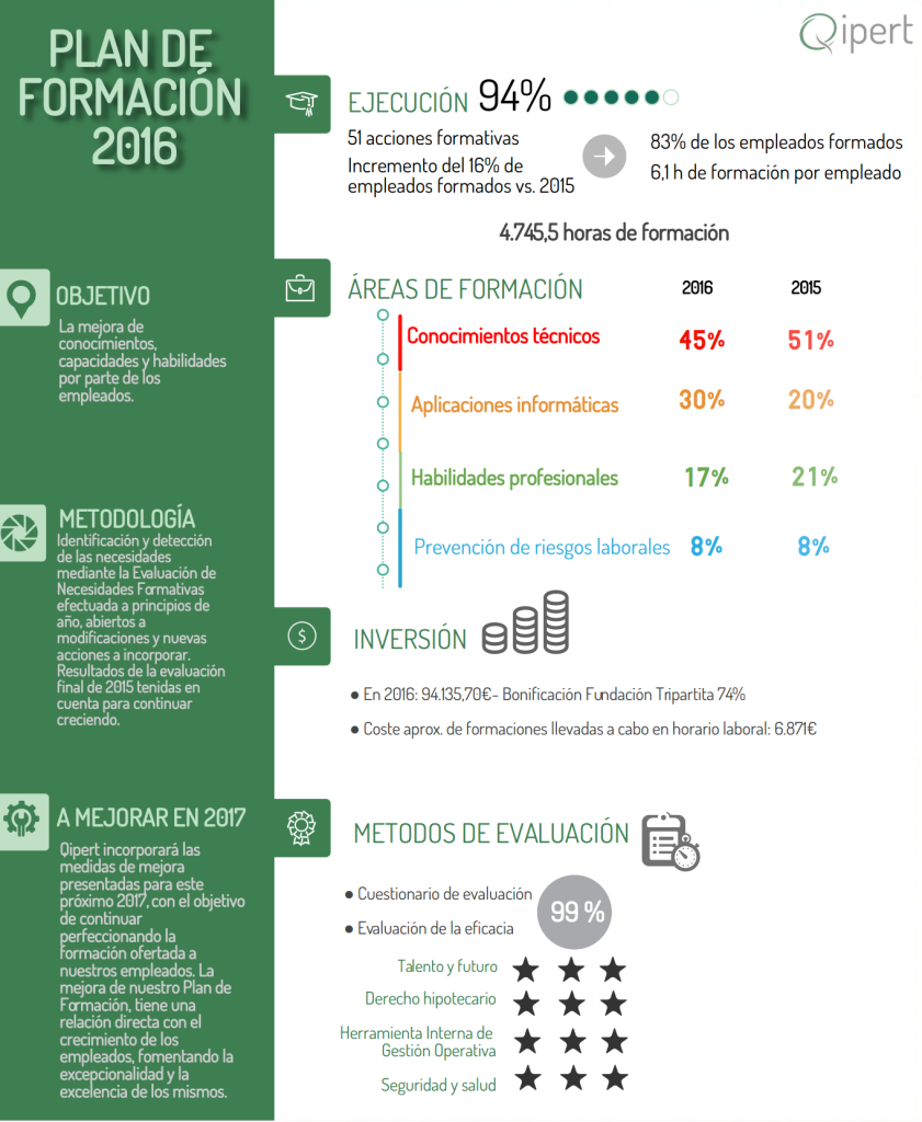 Esta infografía muestra, de una ojeada, los resultados del plan de formación de Qipert en 2016.